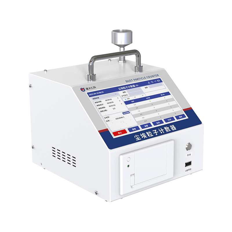 尘埃粒子计数器基于激光散射原理连续采集并计算单位体积内空气中不同粒径的悬浮颗粒物个数,即颗粒物浓度分布,进而换算成为质量浓度并输出。能同时对设定的六个粒径通道进行检测,用户可自行设定采样时间、采样间隔和采样次数等参数。