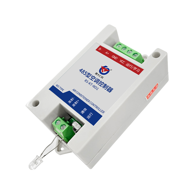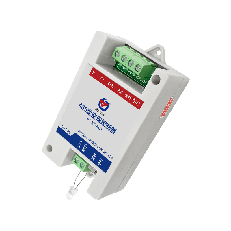 是一款ModBus接口的万能空调调温器。带有学习功能,可以学习空调遥控器的控制码,从而代替遥控器对空调进行控制;RS-KT-N01带有RS485接口支持ModBus-RTU协议,对于支持此协议的PLC、单片机控制系统、力控、组态王、昆仑通态等组态软件均可以通过RS-KT-N01对大部分柜式或壁挂式空调进行自动控制。