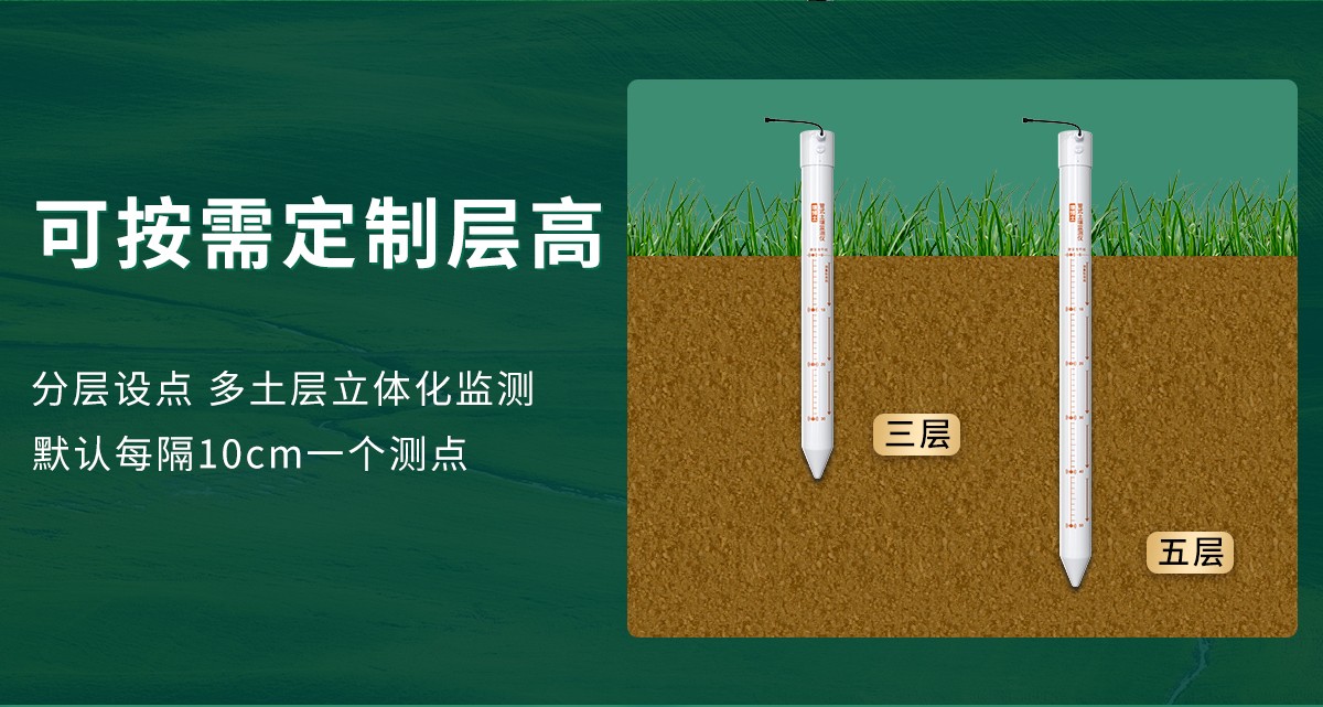 设备采用分层设点的观测结构,观测相对应范围内的土壤温湿度。可根据项目需求定制不同高度的检测结构,对不同土层的温度、水分实时在线监测,同时可选配倾斜角度、加速度、电导率等监测要素一体化集成。PVC高强度工业塑料管,内部环氧树脂胶灌封,不受土壤中盐离子的影响,化肥、农药、灌溉等农业活动不会影响测量结果。