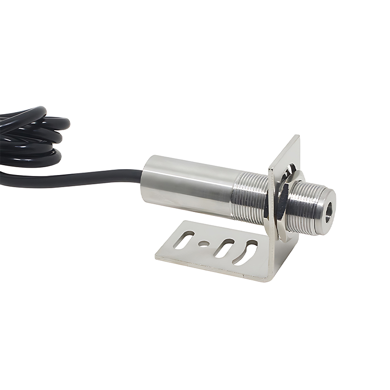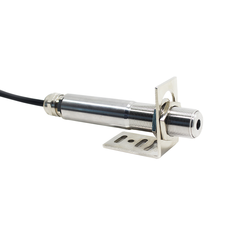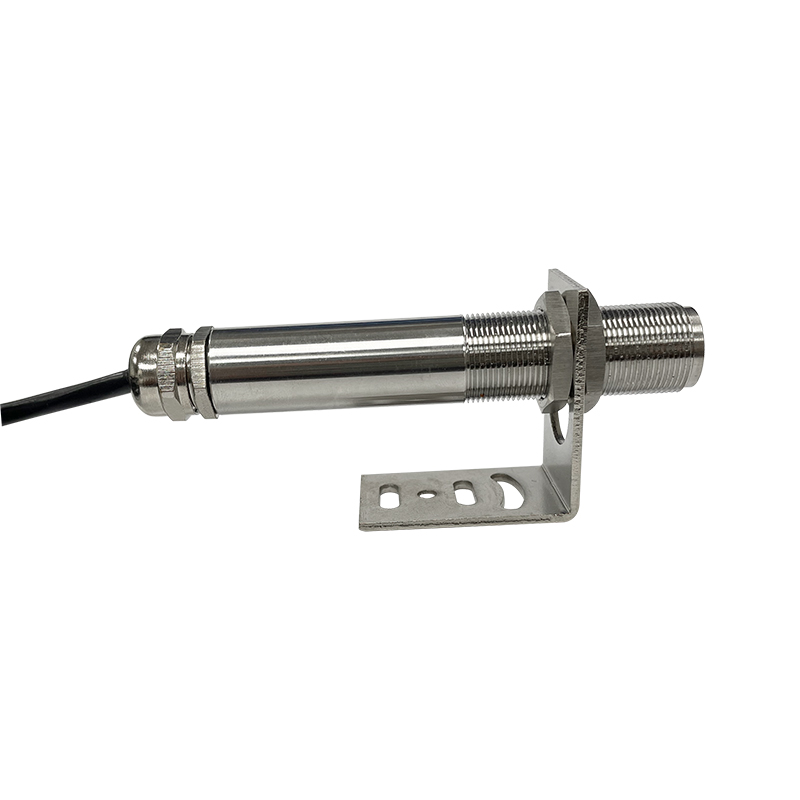 该温度传感器为一体化集成式红外温度传感器,它可以不接触目标而通过测量目标发射的红外辐射强度计算出物体的表面温度;传感器、光学系统与电子线路共同集成在不锈钢壳体内;易于安装,金属壳体上的标准螺纹可与安装部位快速连接;同时还有选件(安装支架)以满足各种工况场合要求。