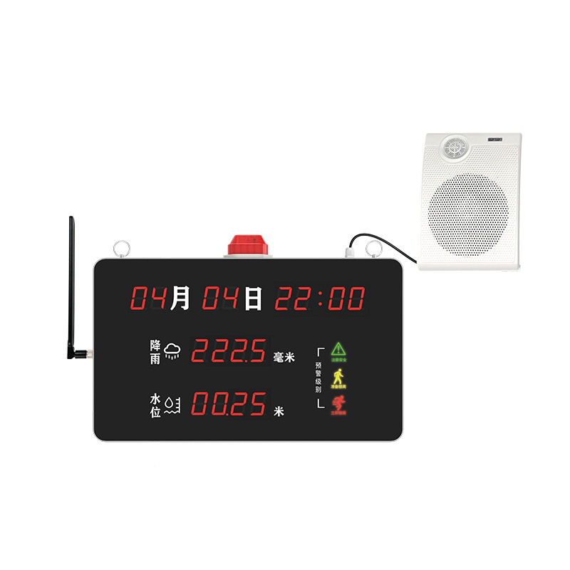 4G型入户防汛预警设备,设备基于4G通信接口,可远程获取云端的降雨、水位等水文测定数据,实现数据异常语音播报,支持声光报警、短信转语音播报、电话喊话播报、云平台下发播报等报警方式,从而保障居民人身财产安全。同时设备还具有居民常用的日历、时钟、实时通信状态。