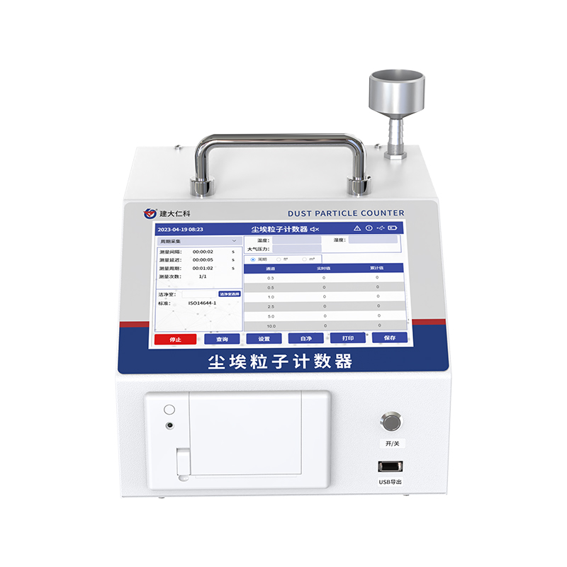 尘埃粒子计数器基于激光散射原理连续采集并计算单位体积内空气中不同粒径的悬浮颗粒物个数,即颗粒物浓度分布,进而换算成为质量浓度并输出。能同时对设定的六个粒径通道进行检测,用户可自行设定采样时间、采样间隔和采样次数等参数。