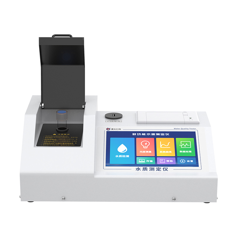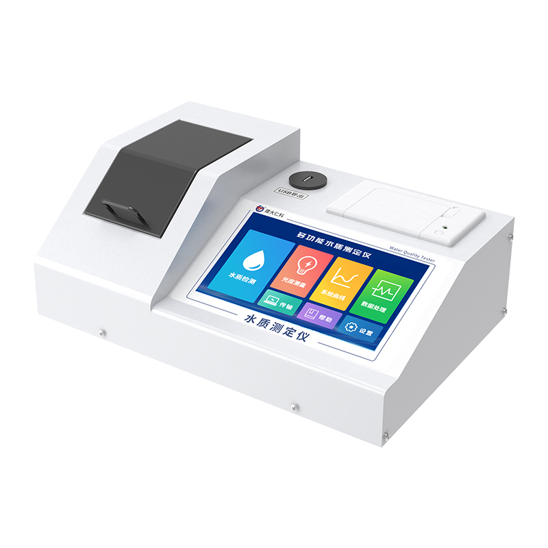 多功能水质测定仪采用分光光度原理对水体样本进行定量测定,可检测氨氮、COD、总磷等几十种要素,搭载 7 寸全彩液晶显示屏,可以直观显示检测数据,内置打印机,可自动打印测试结果。可用于实验室和现场水质检测和通用分析。仪器具备整套应用程序、数据存储和输出、系统管理的功能。