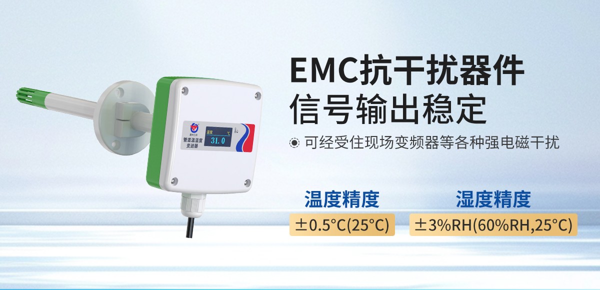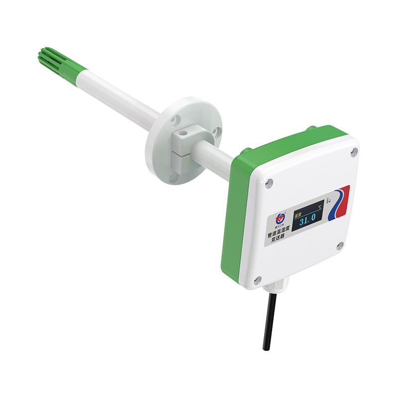 专业应用于管道温湿度测量,管道式安装方式,现场安装方便,抗干扰电路设计,可经受住现场变频器等各种强电磁干扰;设备采用防水外壳设计,设备具有高亮彩色 LED 显示屏,轮显实时温湿度,保证昏暗的场所内也能够看清显示数值。