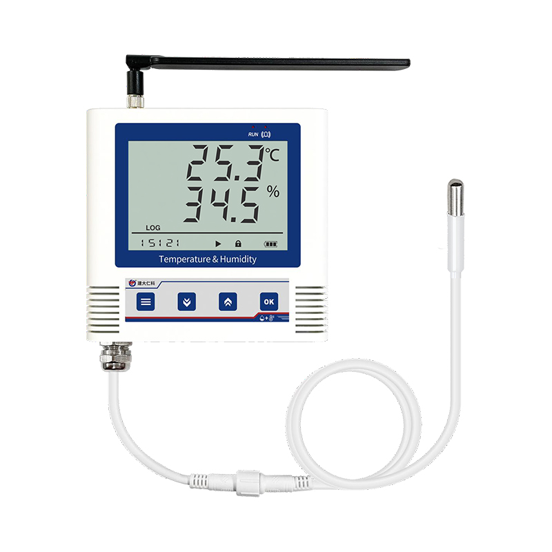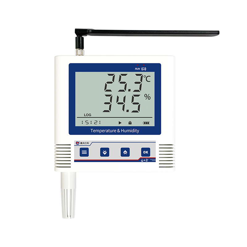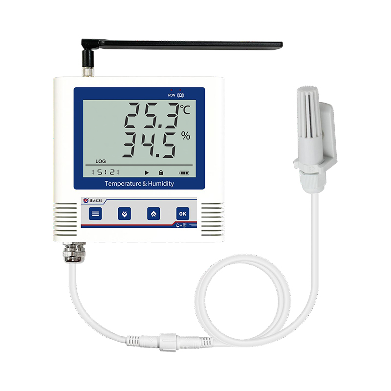 产品采用大屏液晶显示,具有温湿度上下限双控,限值自由设置,温度、湿度校准,4G数据传输等功能,内部集成报警功能模块(蜂鸣器),可实现超高、低温、高、低湿时报警。设备传感器具有测量精度高,抗干扰能力强等特点,在恶劣环境下例如鸡舍中防腐蚀,保证了产品的优异测量性能。