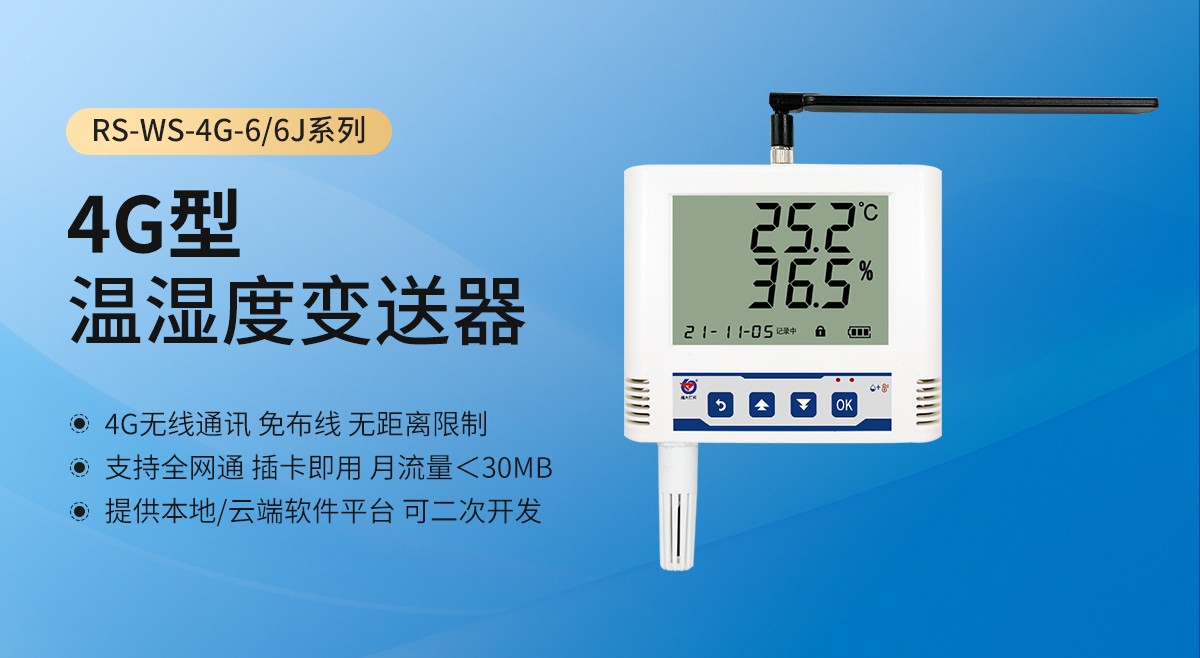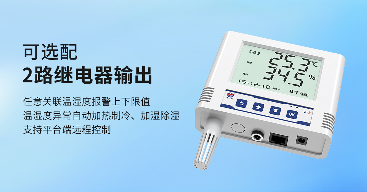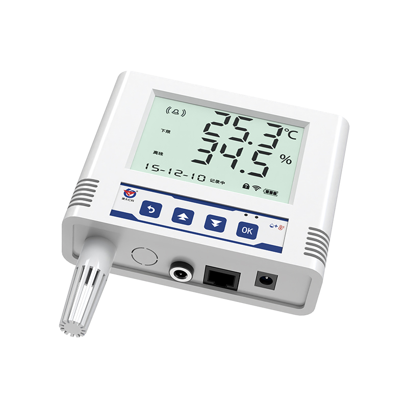 产品采用大屏液晶显示,具有温湿度上下限双控,限值自由设置,温度、湿度凭密码校准,4G数据传输等功能,内部集成报警功能模块(蜂鸣器和继电器),可实现超高、低温、高、低湿时报警。产品采用瑞士原装温湿度测量单元,具有测量精度高,抗干扰能力强等特点,保证了产品的优异测量性能。