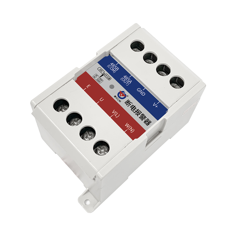 该报警器能够进行单相电断电检测,三相三线、三相四线断电及缺相检测。报警信号可选485输出,亦可选开关量干接点输出。可直接接入现场的PLC、工控表、组态屏或组态软件。设备采用卡轨式外壳,即可壁挂安装也可现场安装于标准DIN35mm导轨。