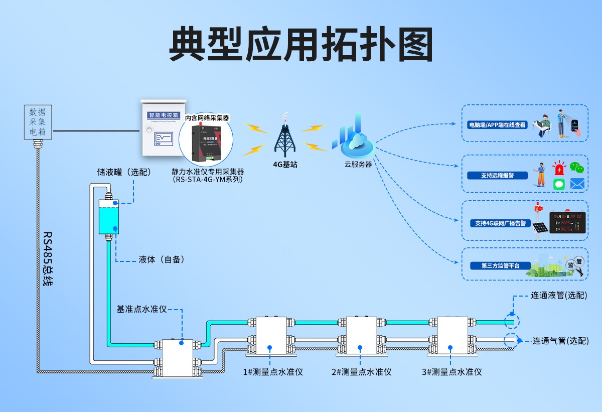 压差式静力水准仪是一种高精密液位测量仪器,基于连通器原理通过测量各测点相对于基准点的液位变化来反映地面沉降变化,实现远距离、自动化、连续性的监测,为工程安全监测提供可靠数据支持。