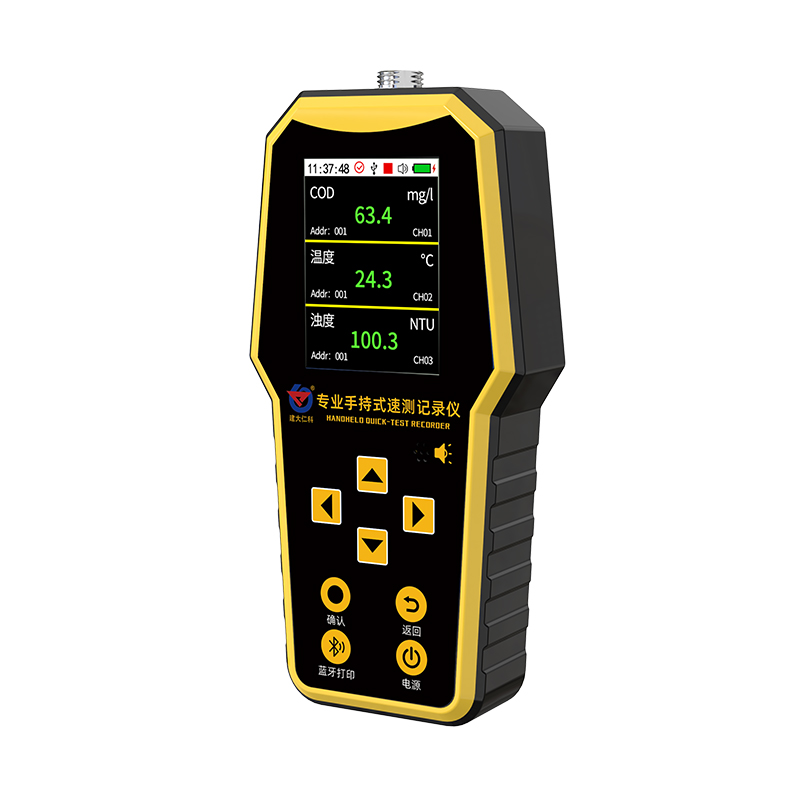 手持式水质速测记录仪是集水质观测、记录、分析为一体的智能化便携检测仪器,整机具备重量轻、体积小、快速布设、方便收纳、电池供电等优点,可以接入我司所有水质检测传感器,如氨氮、溶解氧、浊度、余氯、EC、PH以及各类离子变送器。