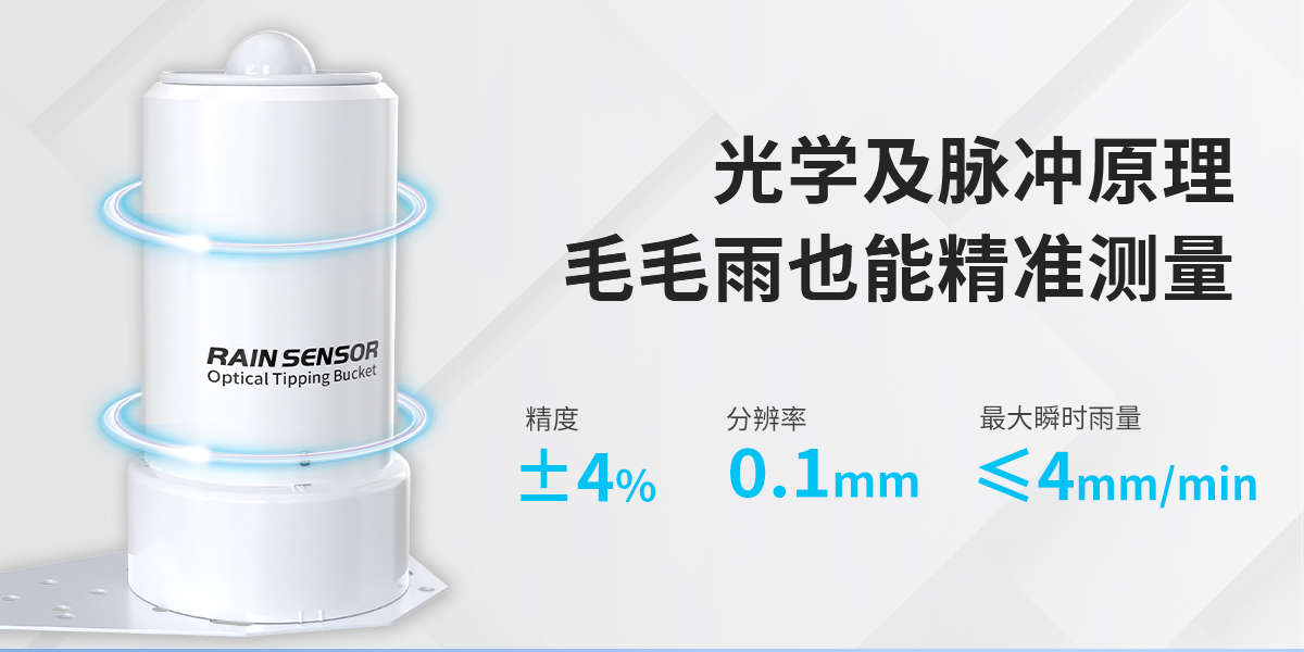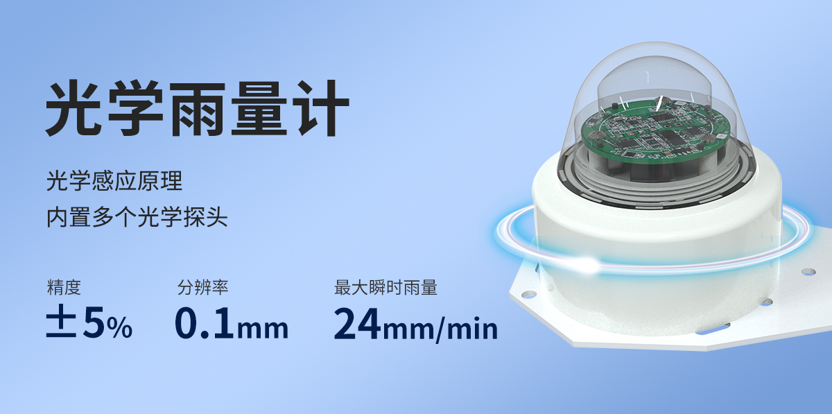 光学雨量传感器,采用光学及脉冲原理,可选配雨量+光照一体式测量,光照度量程范围0-20万Lux。区别于传统的机械雨量传感器,光学雨量传感器体积更小、更灵敏可靠,更智能,易维护。