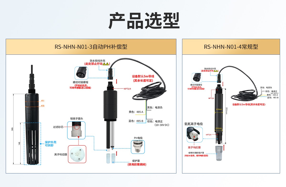 | 氨氮测量误差 | -3/-4选型:±3%FS(25℃下实验室环境) -5选型:±5%FS(25℃下实验室环境) |