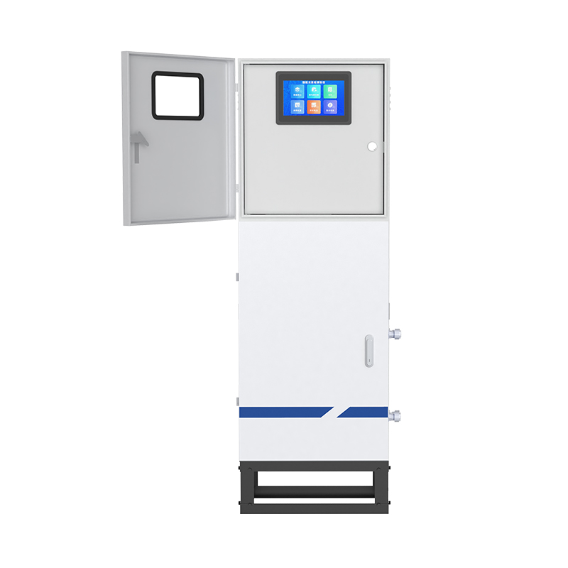 机柜式取水监测平台整体由取水系统、监测系统及显示系统三部分组成 ,其内置的“自动取水、储水、排水”的开流系统,在实现“自动定时循环更换水质样本”的同时,还排除了流速对于传感器的影响,大大提升了检测结果的稳定性,延长了传感器的使用寿命。