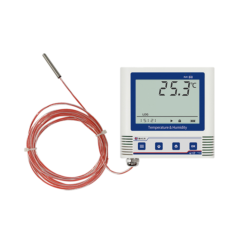 该记录仪主要用于监测记录食品、医药品、化学用品等产品在存储和运输过程中的温度数据,内置高灵敏度测温元件,测量精度高、抗干扰能力强,测量范围-200~+300℃,仪自带大尺寸液晶屏,可显示实时温度值、温度极值且温度单位摄氏温度和华氏温度可自由选择。