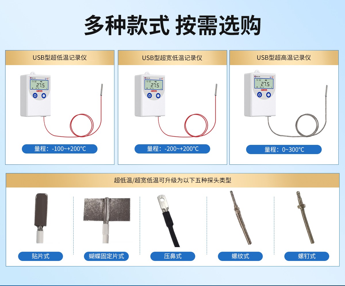 | -5WL | 超宽低温探头:测温范围-200~+200℃,探头线长度默认3米 | |