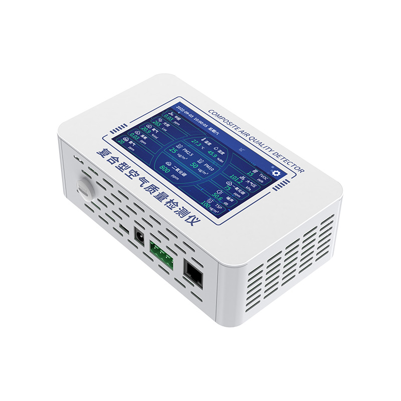 该设备是我公司自主研发的一款空气环境多要素变送器,设备内置大屏液晶,用于检测空气环境中的PM2.5、PM10、温度、湿度、气压、光照、TVOC、氧气、二氧化碳、一氧化碳、甲醛、臭氧、氢气、二氧化硫、二氧化氮、氨气等参数,基本涵盖了反映空气质量的各个指标。