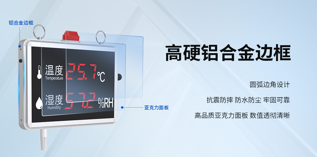 该温湿度看板电路采用美国进口工业级微处理器芯片、进口高精度传感器,确保产品优异的可靠性、高精度和互换性。本产品采用铝合金边框,高品质亚克力面板,外观美观大方。输出信号类型为 RS485,最远可通信 2000 米,标准的 ModBus 协议,支持二次开发。