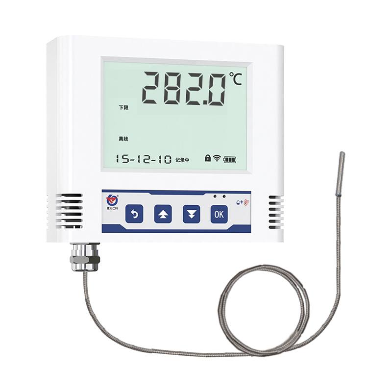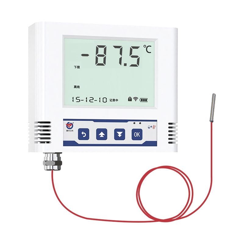 WIFI型超高/低温变送器采用PT100高精度测温探头,可连接2.4GHz/5GHz频段的WIFI无线网络,支持DNS动态域名解析,提供本地/云端软件平台,实现温湿度集中监控。产品采用大屏液晶显示,具有温度上下限双控,限值自由设置,温度凭密码校准等功能,内部集成报警模块(蜂鸣器或继电器),可实现高、低温报警。
