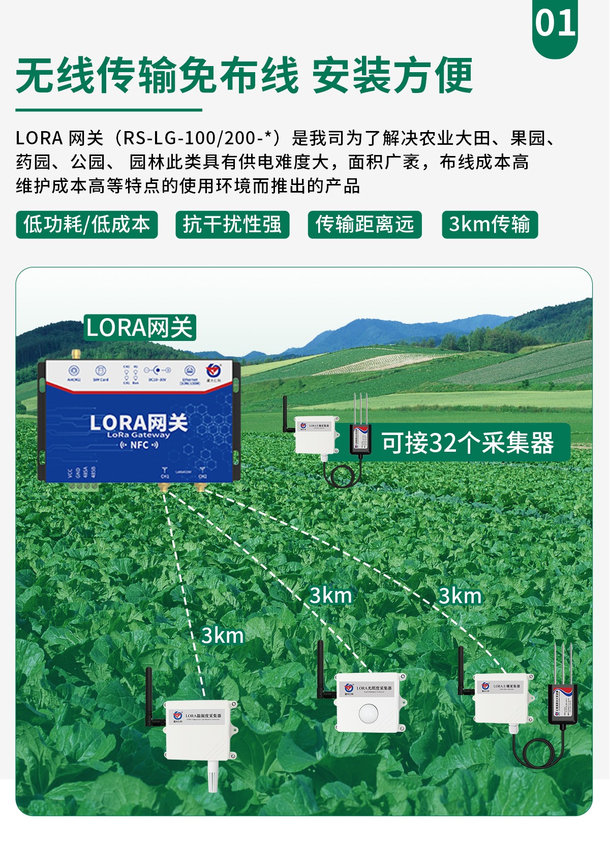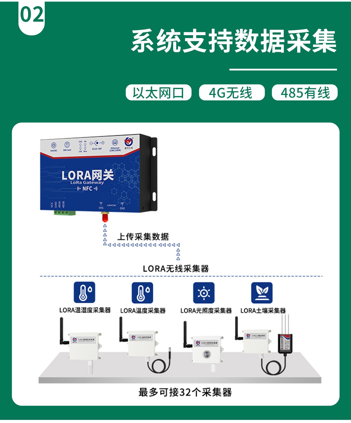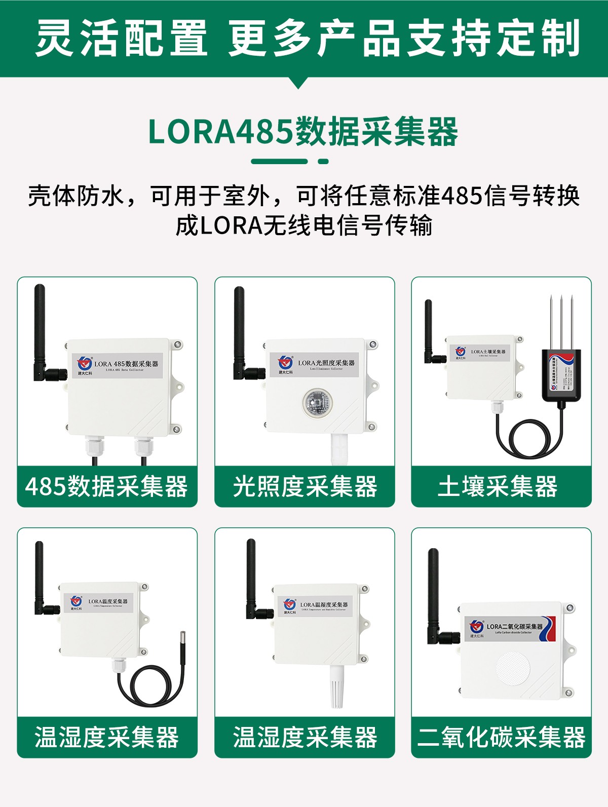 LoRa无线数据采集系统采用基于扩频通信的超远距离、低功耗LoRa无线传输技术,用于多点且远距离分布式的环境数据采集以及设备到云平台的透明传输。