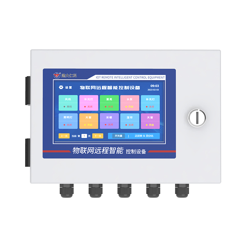 物联网远程智能控制设备系列是我公司为实现以物联网为通信媒介,将控制系统元件与感知元件进行互联,使控制相关信息进行安全交互和共享,达到预期控制目标的系统。 设备采用 7 寸电容触摸屏,通道显示模块化,设备最多可配置 32 路通道,每个通道均支持用户自定义通道名称,支持自定义开关量、正反转及百分比等通道类型。