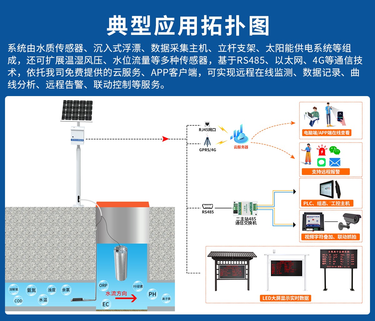 窨井地下水立杆式监测站是掌握地下水变化规律、了解地下水开采状况、指导地下水资源保护的重要手段。该系统可以对自然河流、水库、水源地等地表水及地下水的水质(水位、水温、电导率、PH、溶解氧、浊度、氨氮、总磷、余氯、COD等)实时在线动态监测,实现水质数据的自动存储监测、对地下水的变化规律进行动态分析。
