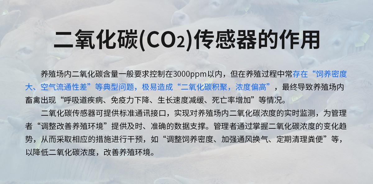二氧化碳传感器可提供标准通讯接口,实现对养殖场内二氧化碳浓度的实时监测,为管理者“调整改善养殖环境”提供及时、准确的数据支撑。管理者通过掌握二氧化碳浓度的变化趋势,从而采取相应的措施进行干预,如“调整饲养密度、加强通风换气、定期清理粪便”等,以降低二氧化碳浓度,改善养殖环境。