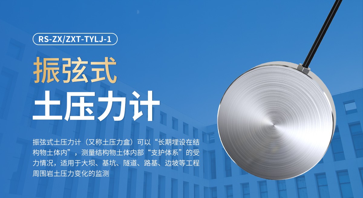 振弦式土压力计(又称土压力盒)主要应用检测地下工程的施工如基坑或隧道开挖、盾构掘进、打桩等引起周围地层岩土压力变化的监测。岩土压力采用埋设土压力计的方式进行监测,若加装温度传感器,即可同步测量安装点的温度。